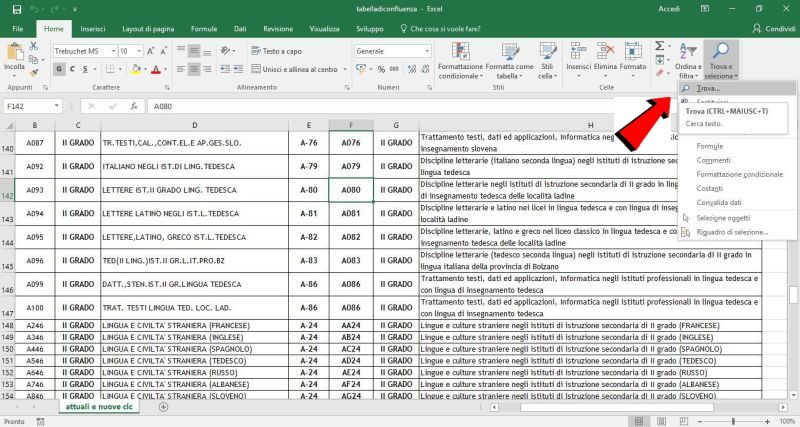 3. Cliccare su “Trova” in alto a destra come da slide seguente (si può fare anche con CTRL+MAIUSCOLO+T).
