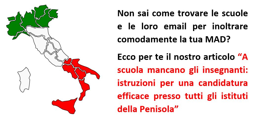 A chi infine avesse dubbi su come rintracciare facilmente tutte le scuole della Penisola e gli indirizzi a cui inoltrare il modello, suggeriamo la lettura dell’altro nostro articolo dedicato al tema “messa a disposizione”…