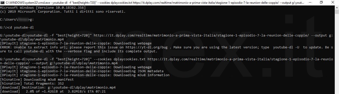 …all’interno della stringa di comando, in accordo a quanto illustrato nell’articolo “Come scaricare video da Dplay”: il punto è che senza le dovute accortezze il sistema non funziona…